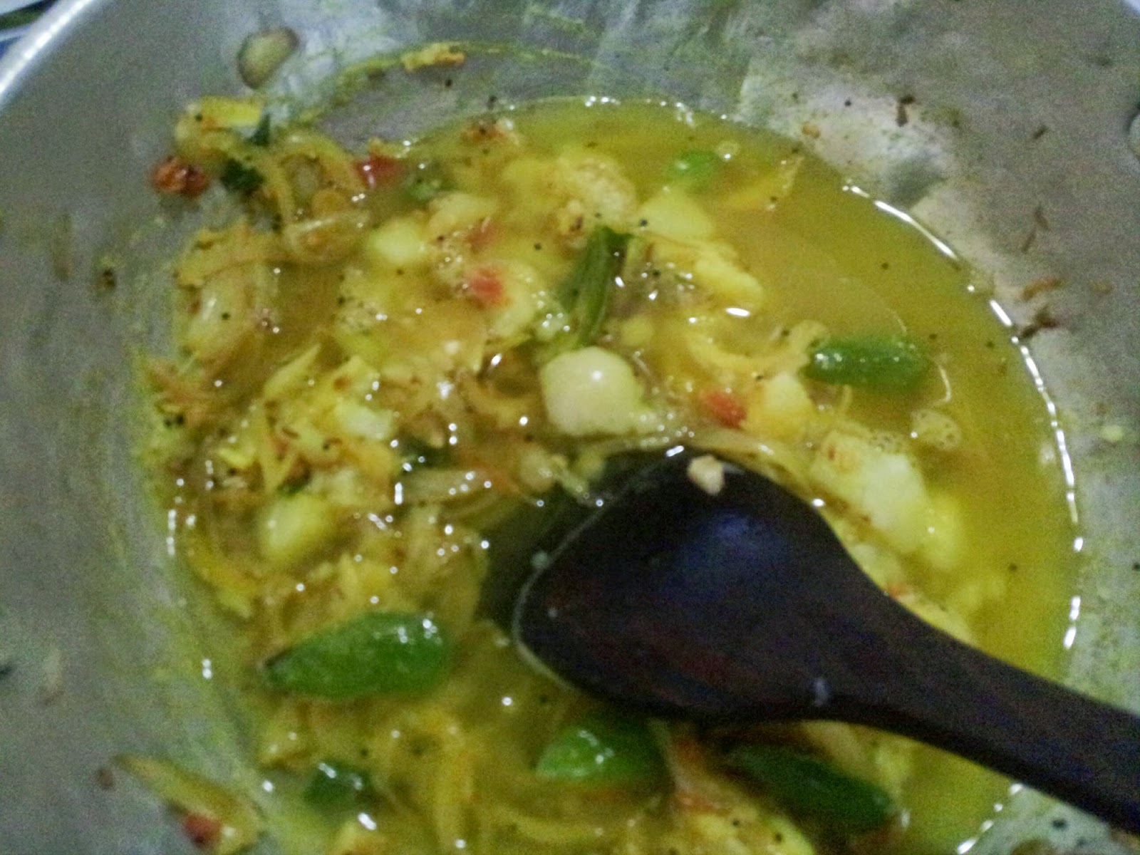 2) Next add onions and toss a little till it all gets mixed (no need to cook till soft ).